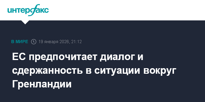 Москва. 19 января. INTERFAX.RU - ЕС в контексте ситуации вокруг Гренландии стремится избежать эскалации и предпочитает тактику сдержанности в расчете на конструктивный диалог с США, заявил официальный представитель Еврокомиссии (ЕК) Олоф Жилл.