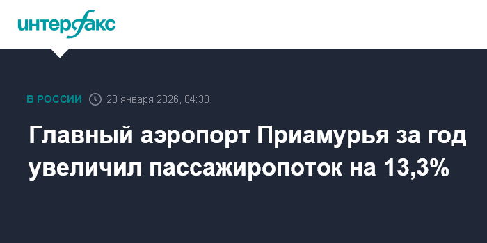 Москва. 20 января. INTERFAX.RU - Международный аэропорт Благовещенска (Амурская область) в 2025 году обслужил более 1,05 млн человек, что на 13,3% больше, чем в 2024 году, сообщает во вторник пресс-служба аэропорта.