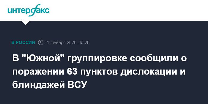 Москва. 20 января. INTERFAX.RU - Подразделения войск беспилотных систем нанесли удары по украинским позициям на краматорском, константиновском и славянском направлениях, сообщил во вторник представитель "Южной" группировки Вадим Астафьев.