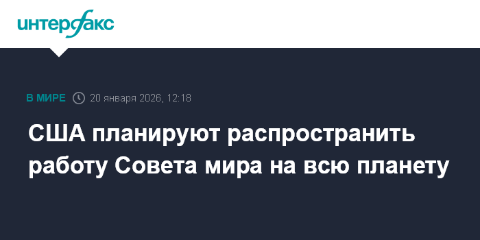 Москва. 20 января. INTERFAX.RU - Власти США собираются расширить сферу деятельности Совета мира, запускаемого в рамках урегулирования конфликта в секторе Газа, на весь мир, сообщает во вторник Axios со ссылкой на неназванного высокопоставленного американского чиновника.