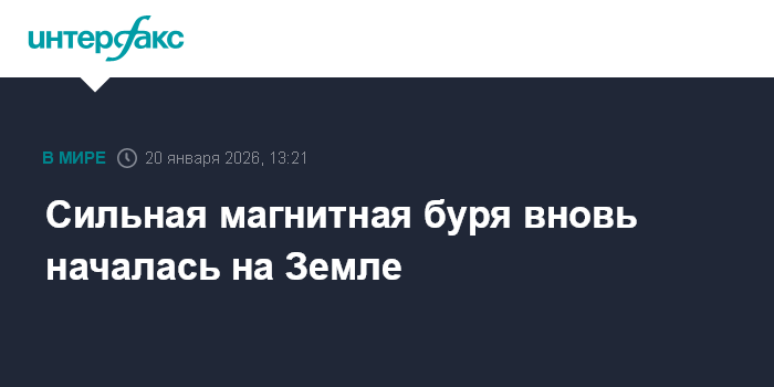 Москва. 20 января. INTERFAX.RU - Магнитная буря уровня G3 по пятибалльной шкале началась на Земле, сообщили в лаборатории солнечной астрономии Института космических исследований (ИКИ) и Института солнечно-земной физики (ИСЗФ) РАН во вторник.