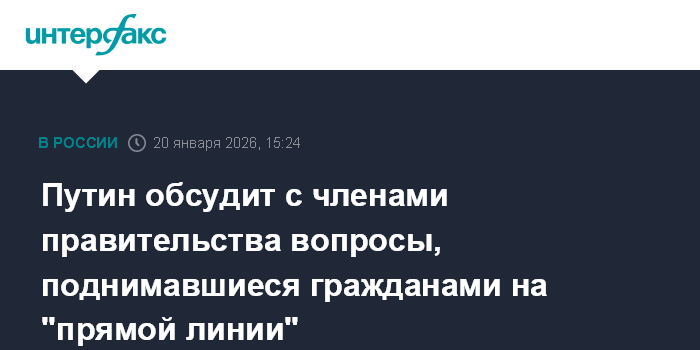 "Основной темой обсуждения станут вопросы, поднимавшиеся гражданами во время специальной программы "Итоги года с Владимиром Путиным", - говорится в сообщении.