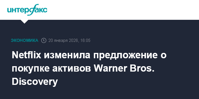 Москва. 20 января. INTERFAX.RU - Netflix Inc. и Warner Bros. Discovery Inc. (WBD) изменили соглашение о покупке Netflix активов WBD и договорились, что сделка будет полностью оплачена денежными средствами.