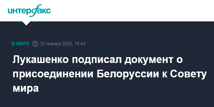 "Президент (Александр Лукашенко - ИФ) от имени Республики Беларусь подписал документ о присоединении Беларуси к Совету Мира и выполнении положений Устава Совета Мира", - говорится в сообщении.