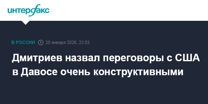 Москва. 20 января. INTERFAX.RU - Спецпредставитель президента России, глава Российского фонда прямых инвестиций (РФПИ) Кирилл Дмитриев заявил, что переговоры с американской стороной проходят конструктивно.