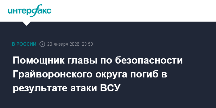 Москва. 20 января. INTERFAX.RU - Губернатор Белгородской области Вячеслав Гладков сообщил, что в результате украинской атаки погиб помощник главы по безопасности Грайворонского округа.