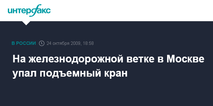 Москва. 24 октября. INTERFAX.RU - Железнодорожный подъемный кран упал в районе Рижского вокзала, сообщил "Интерфаксу" источник в правоохранительных органах в субботу. Кран упал на тупиковой ветке, движение поездов по которой не осуществляется.