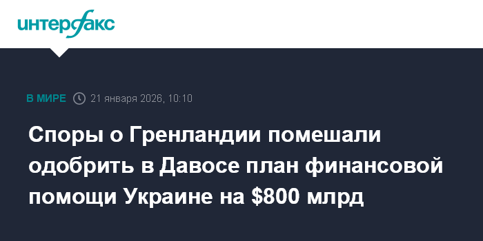 Споры о Гренландии помешали одобрить в Давосе план финансовой помощи Украине на $800 млрд