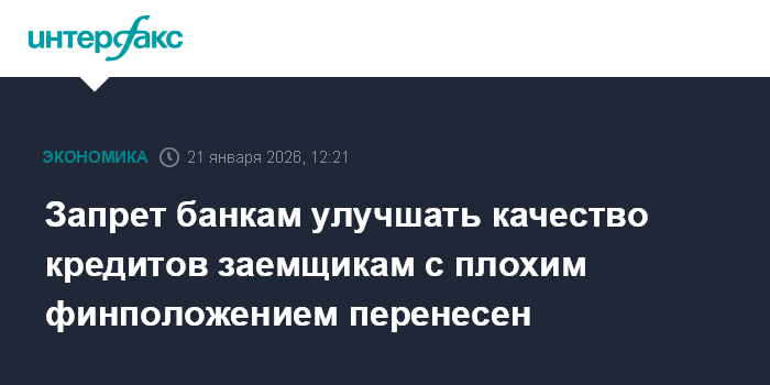 Запрет банкам улучшать качество кредитов заемщикам с плохим финположением перенесен