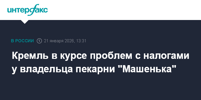 Кремль в курсе проблем с налогами у владельца пекарни "Машенька"