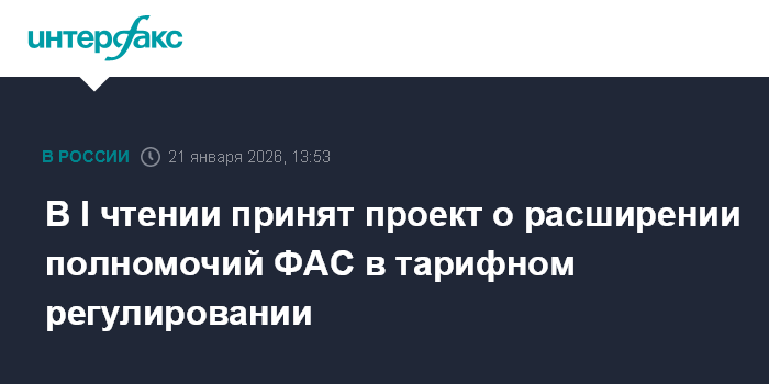 В I чтении принят проект о расширении полномочий ФАС в тарифном регулировании
