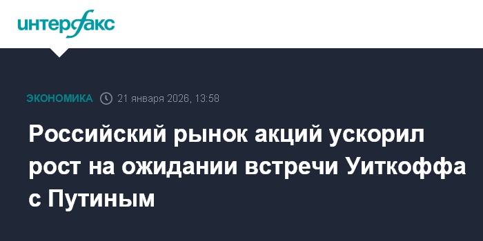 Российский рынок акций ускорил рост на ожидании встречи Уиткоффа с Путиным