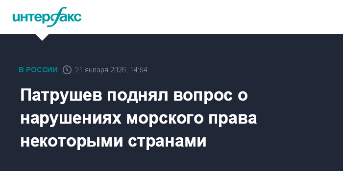 Москва. 21 января. INTERFAX.RU - Помощник президента РФ, председатель Морской коллегии Николай Патрушев провел заседание президиума коллегии, на котором рассмотрели вопросы нарушения норм международного морского права отдельными странами.
