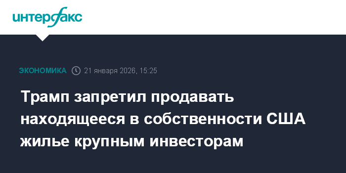При этом в указе нет определений "крупного институционального инвестора" и "односемейного жилья". Трамп поручил сформулировать их министру финансов Скотту Бессенту в ближайшие 30 дней.