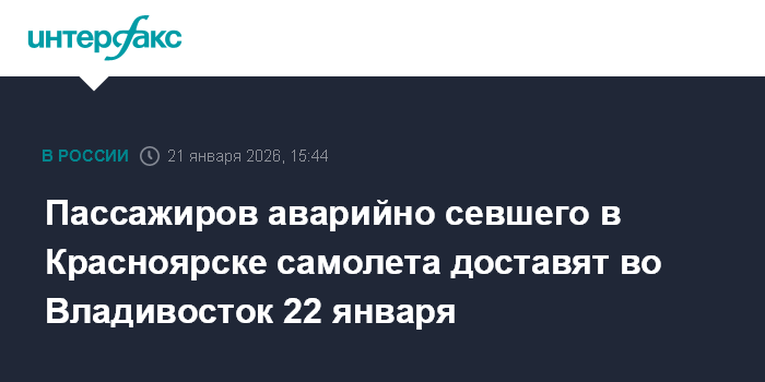 Пассажиров аварийно севшего в Красноярске самолета доставят во Владивосток 22 января
