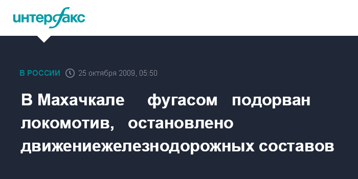 Махачкалы при следовании по запасным путям подорван локомотив.