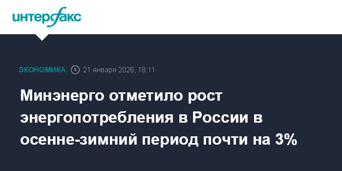 Минэнерго отметило рост энергопотребления в России в осенне-зимний период почти на 3%