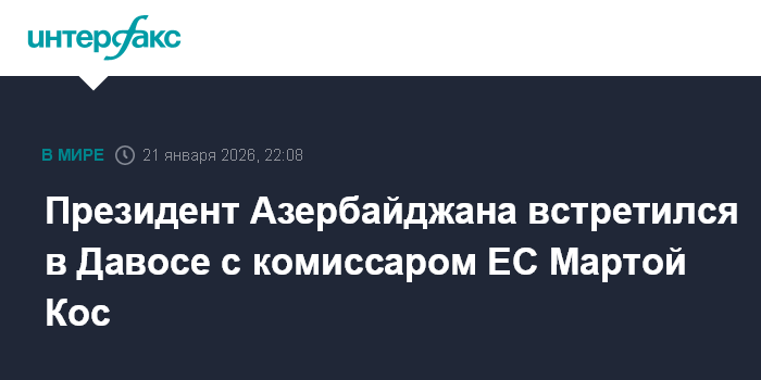Москва. 21 января. INTERFAX.RU - Президент Азербайджана Ильхам Алиев на "полях" форума в Давосе обсудил с комиссаром Европейского Союза по вопросам расширения Мартой Кос сотрудничество Баку и Брюсселя в сферах энергетики и транспорта.