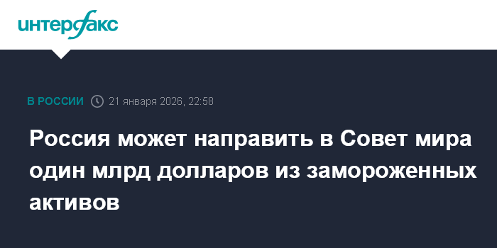 Россия может направить в Совет мира один млрд долларов из замороженных активов