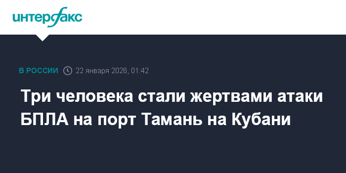 Москва. 22 января. INTERFAX.RU - Количество погибших в результате атаки на портовые терминалы в поселке Волна Темрюкского района увеличилось до трех человек, восемь пострадали, сообщил оперштаб Краснодарского края в Telegram-канале.