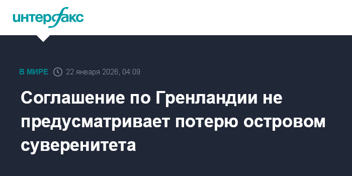 Москва. 22 января. INTERFAX.RU - Обсуждаемое соглашение по Гренландии не подразумевает передачи США суверенитета над островом, однако разрешает размещение там системы ПРО "Золотой купол", сообщает в четверг портал Axios со ссылкой на источники.