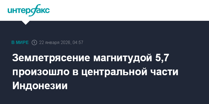 Землетрясение магнитудой 5,7 произошло в центральной части Индонезии