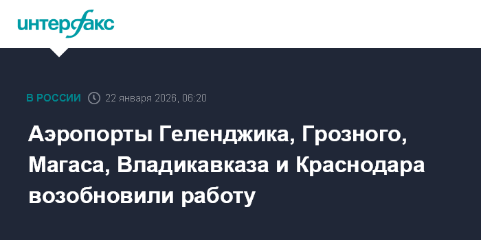Аэропорты Геленджика, Грозного, Магаса, Владикавказа и Краснодара возобновили работу