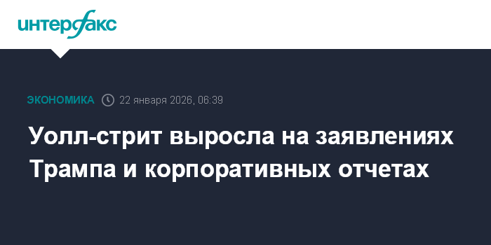Москва. 22 января. INTERFAX.RU - Американские фондовые индексы завершили активным ростом торги в среду благодаря снижению напряженности вокруг Гренландии.