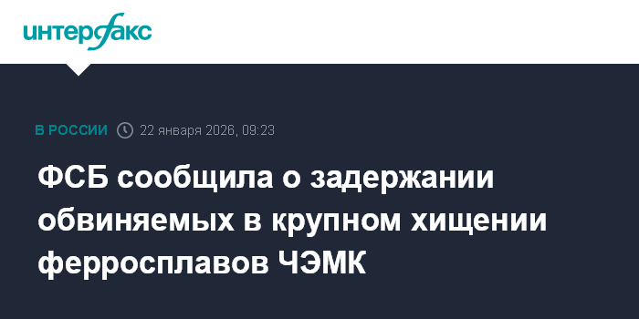 ФСБ сообщила о задержании обвиняемых в крупном хищении ферросплавов ЧЭМК