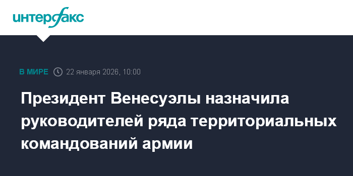 Москва. 22 января. INTERFAX.RU - Временный президент Венесуэлы Делси Родригес сменила около десяти представителей высшего командования вооруженными силами, сообщает EFE.