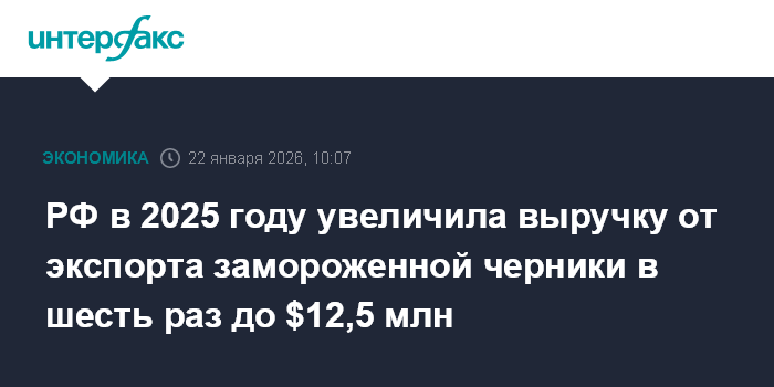 РФ в 2025 году увеличила выручку от экспорта замороженной черники в шесть раз до $12,5 млн