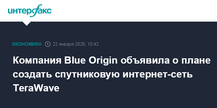 Компания Blue Origin объявила о плане создать спутниковую интернет-сеть TeraWave