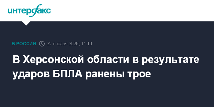 Москва. 22 января. INTERFAX.RU - В Каховке в результате атак БПЛА ранены три человека, сообщил губернатор Херсонской области Владимир Сальдо.