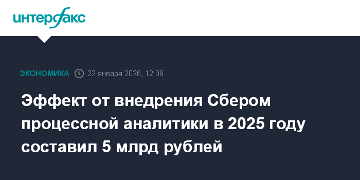 Эффект от внедрения Сбером процессной аналитики в 2025 году составил 5 млрд рублей