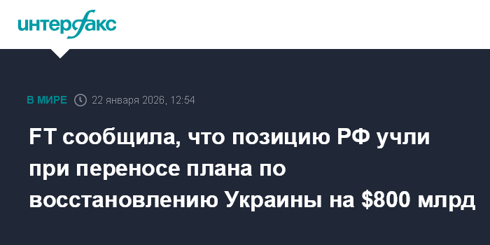 FT сообщила, что позицию РФ учли при переносе плана по восстановлению Украины на $800 млрд