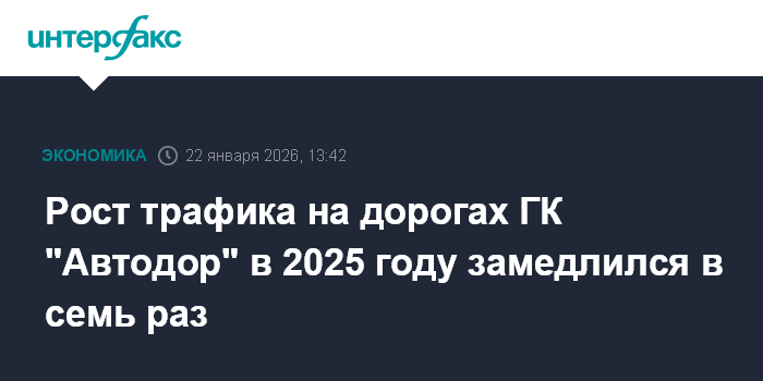 Рост трафика на дорогах ГК "Автодор" в 2025 году замедлился в семь раз
