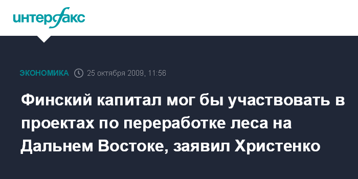 Финский капитал мог бы участвовать в проектах по переработке леса на Дальнем Востоке, заявил Христенко