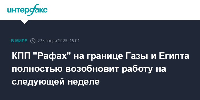 "Я рад сообщить, что КПП "Рафах" откроется на следующей неделе и будет работать в обоих направлениях. Для палестинцев в Газе Рафах - это больше, чем пункт пропуска, это линия жизни", - сказал он в видеообращении на церемонии учреждения "Совета мира", сформированного по инициативе президента США Дональда Трампа.