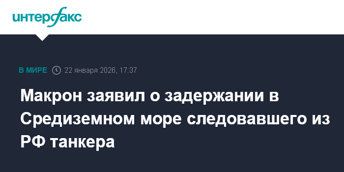 Москва. 22 января. INTERFAX.RU - Президент Франции Эммануэль Макрон в четверг сообщил, что французские военно-морские силы провели операцию в Средиземном море в отношении танкера, который следовал из России.