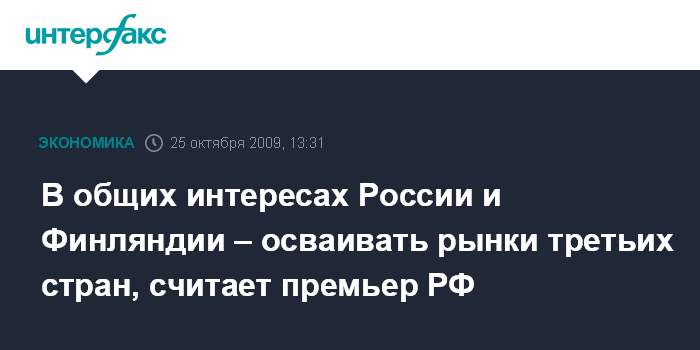 В общих интересах России и Финляндии – осваивать рынки третьих стран, считает премьер РФ