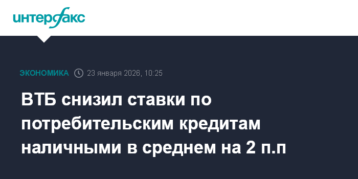 ВТБ снизил ставки по потребительским кредитам наличными в среднем на 2 п.п
