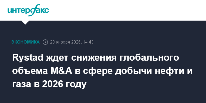 Москва. 23 января. INTERFAX.RU - Глобальный объем слияний и поглощений (M&A) в сфере добычи и разведки нефти и газа продолжит сокращаться в 2026 году после снижения на 17% в 2025 году, прогнозируют аналитики Rystad Energy.