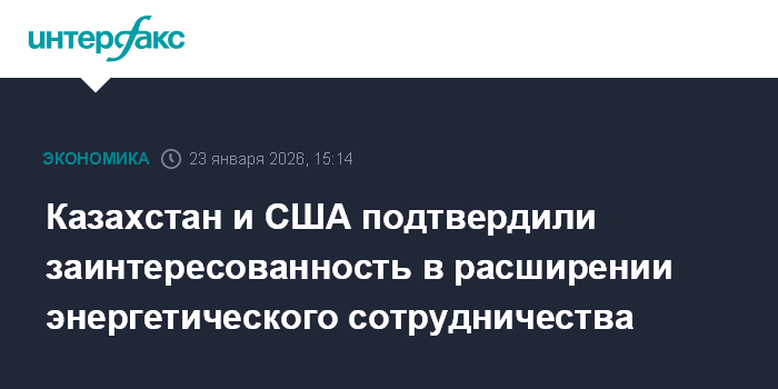 Москва. 23 января. INTERFAX.RU - Казахстан и Соединенные Штаты подтвердили взаимную заинтересованность в расширении двустороннего сотрудничества в энергетической сфере, сообщило Минэнерго Казахстана.
