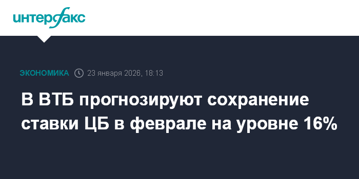 В ВТБ прогнозируют сохранение ставки ЦБ в феврале на уровне 16%