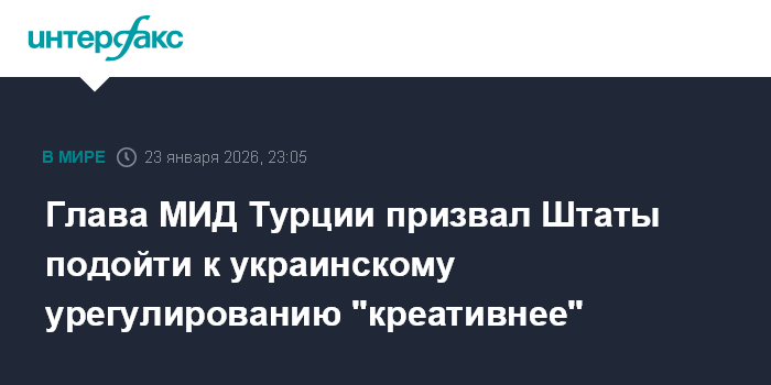 Москва. 23 января. INTERFAX.RU - Американским переговорщикам нужно предлагать "более креативные" решения для урегулирования украинского конфликта, заявил в пятницу глава МИД Турции Хакан Фидан.