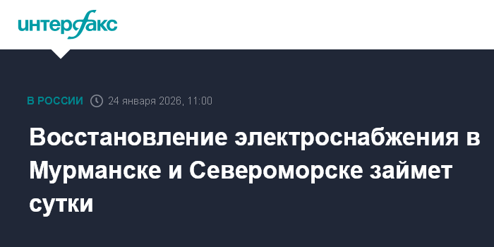 Восстановление электроснабжения в Мурманске и Североморске займет сутки