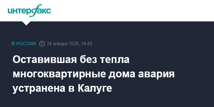 Москва. 24 января. INTERFAX.RU - Завершены аварийные работы на месте прорыва трубы отопления, из-за которого без тепла в субботу остались три многоквартирных дома в центре Калуги, сообщила пресс-служба региональной прокуратуры.