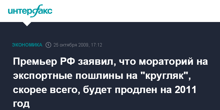 Премьер РФ заявил, что мораторий на экспортные пошлины на "кругляк", скорее всего, будет продлен на 2011 год