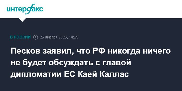 Песков заявил, что РФ никогда ничего не будет обсуждать с главой дипломатии ЕС Каей Каллас