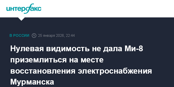 Нулевая видимость не дала Ми-8 приземлиться на месте восстановления электроснабжения Мурманска